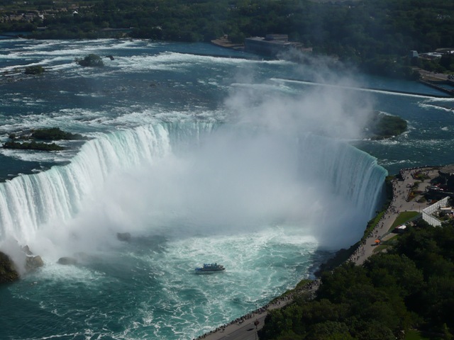 Al principio no nos impresionan mucho, porque las esperábamos más grandes. Pero después, montándonos en el barquito «Maid of the Mist» ya parecen otra cosa, pasando casi por debajo del agua…