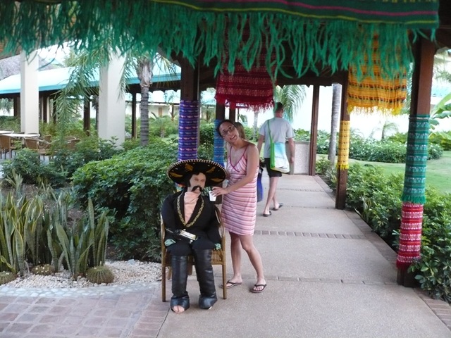 Aunque nos decantamos por ir al restaurante a la carta, que hoy toca comida mejicana. Tras hacernos una foto con un muñeco mejicano que recuerda a Iñigo, cenamos y de nuevo, todo riquísimo, y como siempre, repito segundo plato… jejeje Y tras la cena, vamos a ver la actuación tribal que han preparado en la playa, con un daiquiri, y luego a darnos un paseo romántico en el embarcadero, y de paso a dar de comer al mosquiteo local… Y a dormir, hasta mañana!