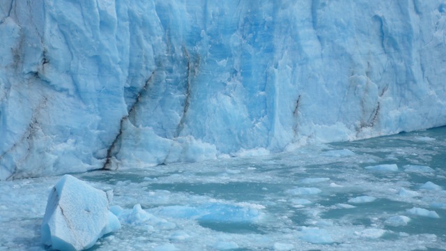 Por lo que nos cuentan, están esperando un derrumbe del glaciar. Cada dos o tres años, el glaciar crece hasta interrumpir el flujo de agua entre dos brazos del lago Argentino. Uno de los dos brazos empieza a subir el nivel de sus aguas, hasta que la presión del agua de este brazo es tan descomunal que consigue romper el hielo causando un espectáculo inolvidable… Lástima que no hemos tenido la suerte de contemplarlo, porque debe ser una maravilla poder ver el fenómeno, pero nos ahcemos una pequeña idea con el derrumbe que hemos podido contemplar.