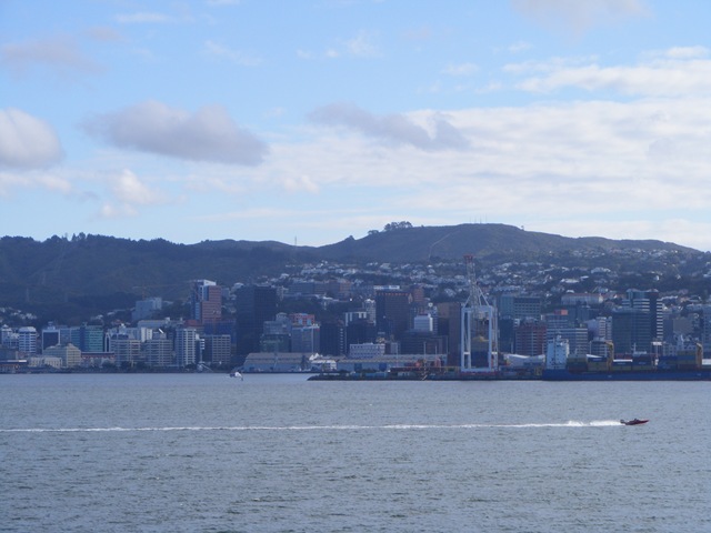 Y ya llegamos a Wellington. Es una muy buena hora, casi las 12 de la mañana, asi que decidimos cruzar hoy. Hay dos barcos, a las 2 y a las 6 y tardan tres horas en cruzar el estrecho de Cook, así que pasando de la capital. De capitales está el mundo lleno, y aqui hemos venido a ver naturaleza y paisajes… Así que compramos el ticket y esperamos pacientemente que dé la hora (por cierto, el barco está retrasado hasta las 3). Disfrutando de las ventajas de ir con la casa a cuestas, esperando en el living, en nuestro sofacito, escribiendo el diario en la mesa.