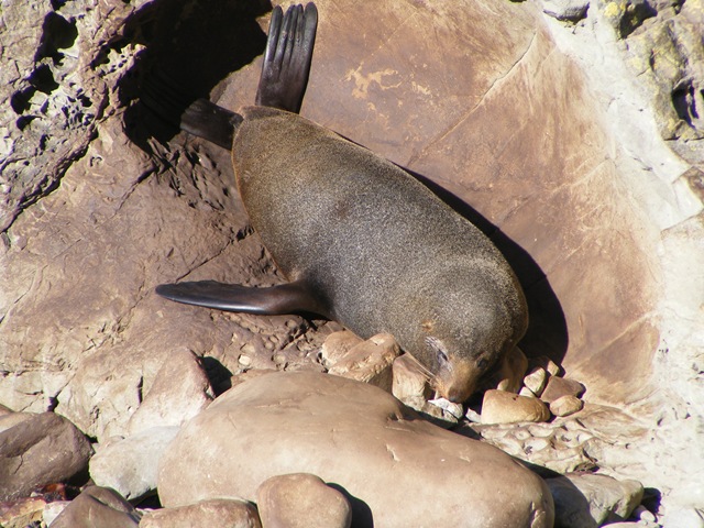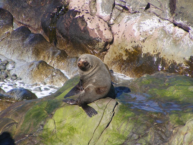 Durante el camino, encontramos un cartel que pone Ohau Point Seal Colony y paramos a ver las vistas… Y las focas salvajes que están echándose la siesta de después del desayuno o de antes de comer… No se bien, el caso es que están todas bien tranquilotas repanchingadas al sol, asi que tuve que echarles unas buenas fotos…