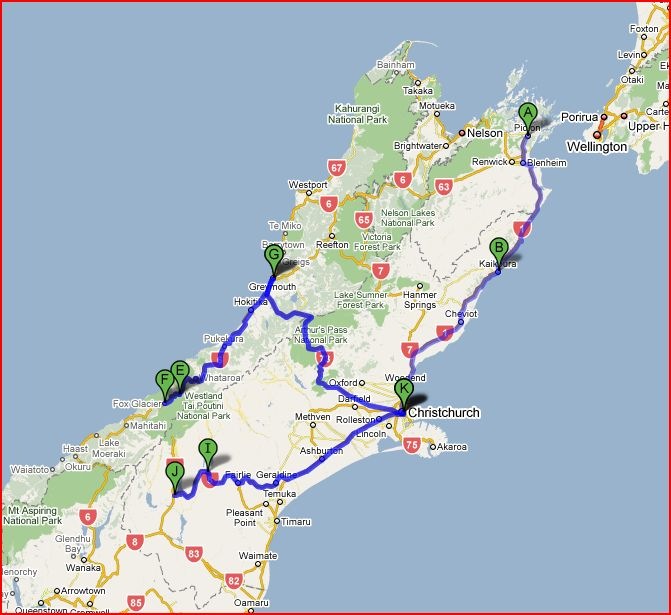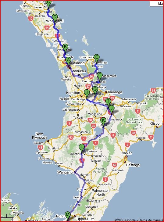 Esta ha sido la ruta que hemos seguido en la Isla Norte: