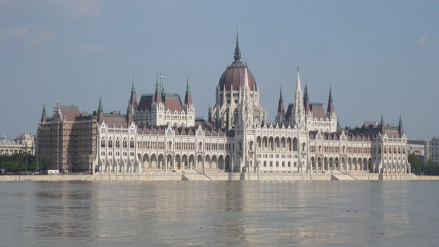 Salimos de la fortaleza por la puerta de Austria, y descendemos para ver, desde el lado de Buda, el parlamento que está en Pest: