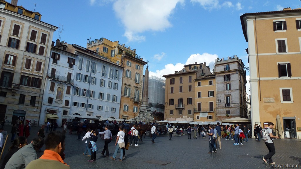 Después giramos a la derecha y después de ver el la estatua del Elefantino, llegamos a la plaza del Panteón, llena de vida, terrazas, y carruajes tirados por caballos. A su lado se encuentra, por supuesto, el Panteón de Roma. El Panteón es la edificación mejor conservada de la Roma clásica. Tras mas de 2000 años, sigue en pie casi como el primer día y se sigue utilizando, de hecho, justo cuando salíamos ya no dejaban entrar a más gente porque iban a oficiar misa.
