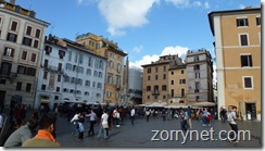 Vemos el Mausoleo Augusto y nos desviamos hasta la Vía del Corso, que debe ser algo así como nuestra Gran Vía, por la impresionante cantidad de gente que hay, pareciera que hay una fiesta o similar. Por fin llegamos a la Piazza y nos sentamos un rato a descansar y escuchar de paso a un chaval haciendo música de percusión con cubos, sartenes, platillos y otros adminículos… Un crack el tío, menudo ritmo, parecía la Maxima FM, dan ganas de ponerse a bailar jajajaj