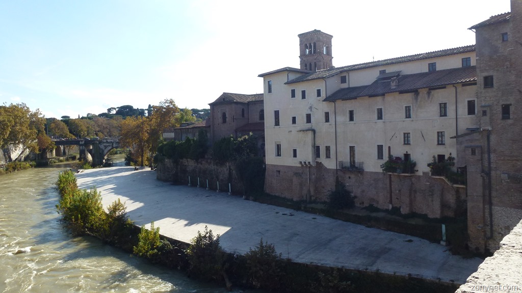 En fin basta de lamentos, sigamos disfrutando de la ciudad que nos está resultando preciosa. Es impresionante porque sea la calle que sea por la que te metes, ves un monumento… Enseguida llegamos al rio Tiber y bajamos su curso hasta el Ponte Fabricio, lugar por donde se cruza a través de una islita en medio del rio, llamada Isola.
