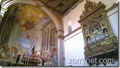 A la vuelta bajamos por la calle Santa María donde no hay ni un alma, pero vemos un par de restaurantes , en uno nos dicen que están completos así que entramos en el otro, que se llama il santo (no, creo que Casillas no tiene nada que ver), donde cenamos muy rico, María se cenó unos spaghetti frutti di mare y yo un risotto ai funghi. Muy rico todo.