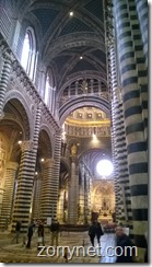 Dentro alucinamos otra vez con lo bonita que es la catedral, llama mucho la atención la decoración de las columnas con mármol blanco y negro. Y tras dar un rato un paseo por su interior, y un poco apenados por no tener más tiempo para disfrutarla más, nos volvemos al coche para partir hacia San Gimignano.