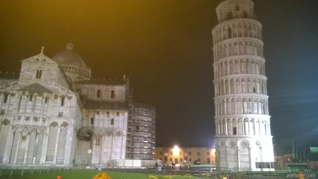 Salimos a cenar y dar una visual. En 15′ llegamos a la archifamosa torre , tras cruzar el rio Arno por el Puente di Mezzo, y subir por un par de animosas calles llenas de estudiantes. Atravesamos la Piazza del Cavalieri hasta que llegamos al Duomo y la torre.
