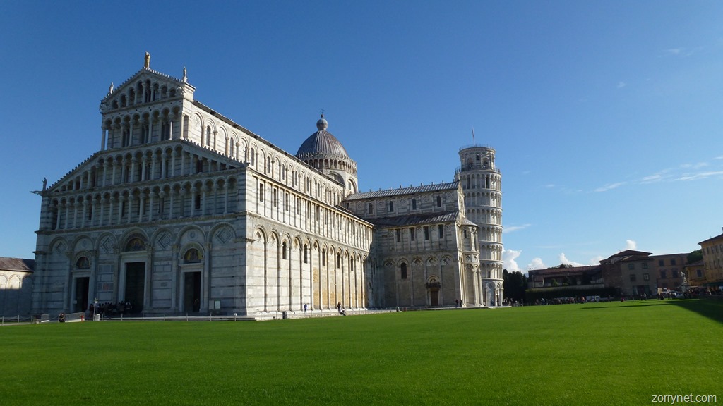 Tras hacer el check-out del hotel, dejamos el coche en el parking mientras hacemos la visita a la ciudad. Tomamos una ruta parecida a la de anoche visitando la Piazza del Comendadore de camino a la Torre Pendente, donde nos hacemos las fotos horteras de rigor sujetando la torre. Además paseamos por el recinto del Duomo y el Batisterio, aunque decidimos no subir a la torre porque hay demasiada gente esperando… En su lugar, damos un paseo por la muralla de pisa mientras volvemos hacia el hotel.
