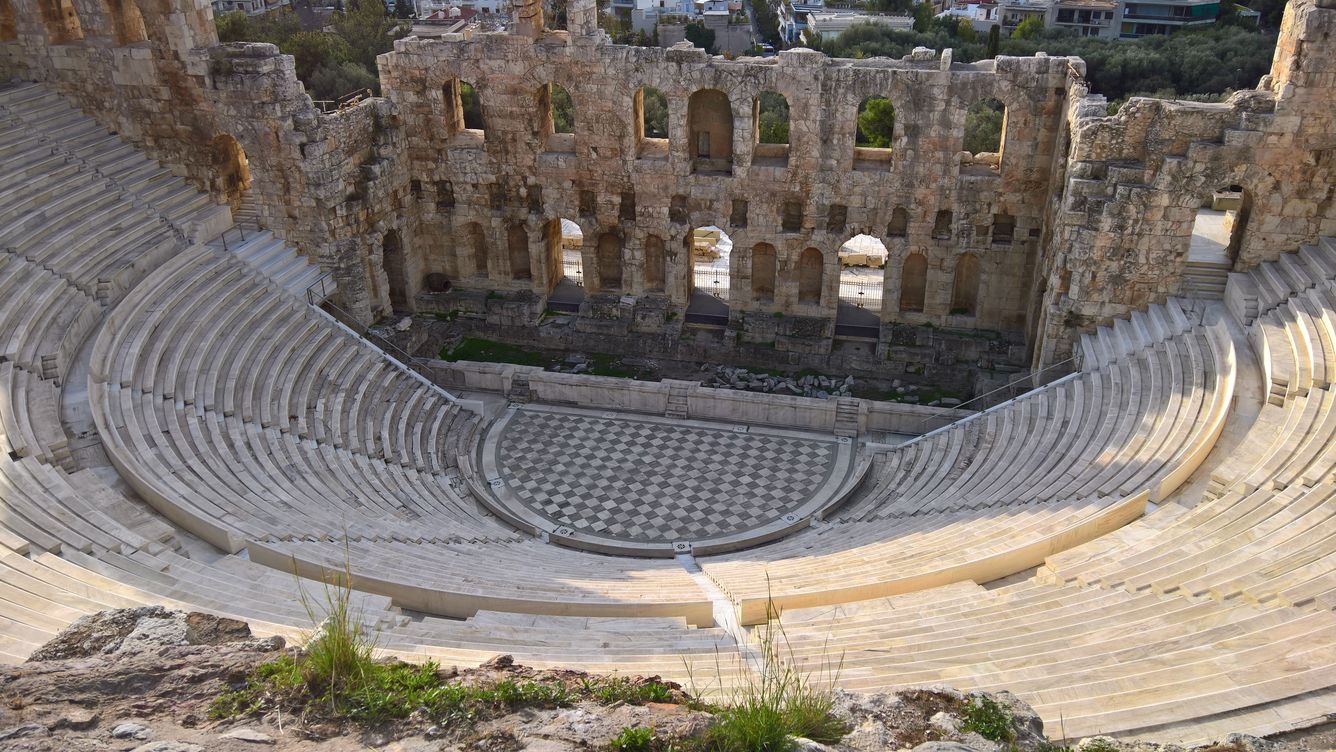 Ya en la calle, recorremos el barrio de Plaka para dirigirnos hacia la Acrópolis. Nos gusta mucho la calle Kidathireon, peatonal y con suelos de mármol, con muchas terracitas para tomar algo, lo apuntamos para la tarde! Tras atravesar un pequeño barrio de callejuelas estrechas y casas de adobe llegamos a la entrada de la acrópolis. Tras pagar los 10 pavitos de la entrada primero visitamos el teatro de Dioniso.