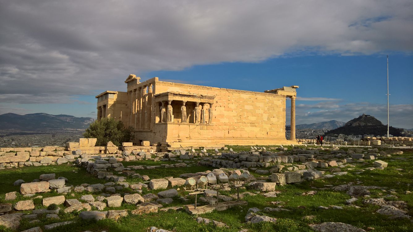Después, atravesamos la entrada de la acrópolis por el majestuoso Propileos, el Partenón (construido en el siglo V antes de Cristo para cobijar una colosal escultura de madera de marfil y oro de 12 metros de altura) , y el fantástico Erecteion, con las Cariatides, seis vírgenes en forma de columna, construido en el lugar donde la diosa Atenea hizo florecer el primer olivo de Grecia. Visita impresionante e imperdible!