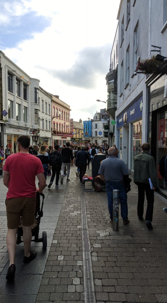 Bueno, nos bajamos en el final de la línea en Eyre Park, y damos un paseo por el barrio medieval de la ciudad, un barrio muy bonito y con mucha vida. Aprovechamos las tiendas de la calle Store Street para hacer unas compras de souvenirs que, como siempre, Olivia encuentra a la primera y a Blanca le cuesta mucho elegir. María compra un imán para la nevera, las tradiciones mandan…