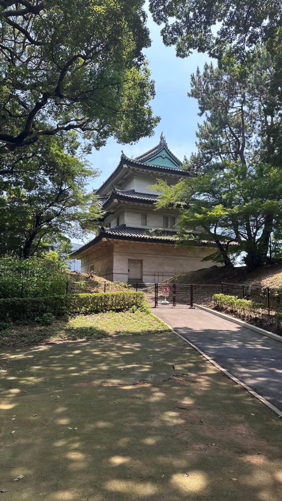 Vamos a visitar el palacio imperial en el barrio de Chiyoda. Tras un rato caminando por los jardines del palacio imperial y leyendo un poco nos damos cuenta de que lo poquito que se ve son los restos del antiguo palacio de Edo. Gran parte del palacio fue totalmente destruido durante la segunda guerra mundial y lo que se reconstruyó no es visitable por el ciudadano de a pie salvo días puntuales ya que es la residencia del emperador de Japón. Así que hay poco que ver si no te gustan los jardines, y con el calor, casi ni nos acordamos de sacar la cámara de fotos. Estuvimos en una réplica de un puesto de guardia construido con madera, en el que podías hacerte una idea de como vivían los militares en los alrededores del palacio.