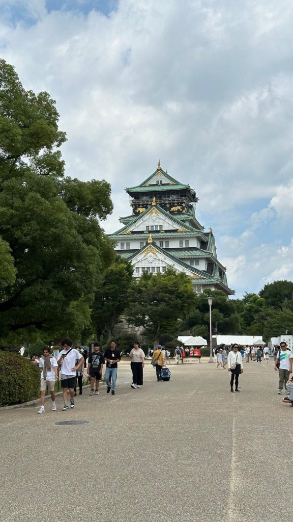 Así que nada, una hora perdida y el dinero claro, al final cogemos un pase de un día de metro en la máquina. Nos vamos hacia el castillo de Osaka, es impresionante mente alto, pagamos una entrada (los menores de 15 no pagan) y subimos arriba a contemplar las vistas, no sin antes tener que parar a tomar un café para recuperar el aliento porque el paseo desde el metro a aquí ha sido como una travesía en el desierto. Chico, que calor hace!