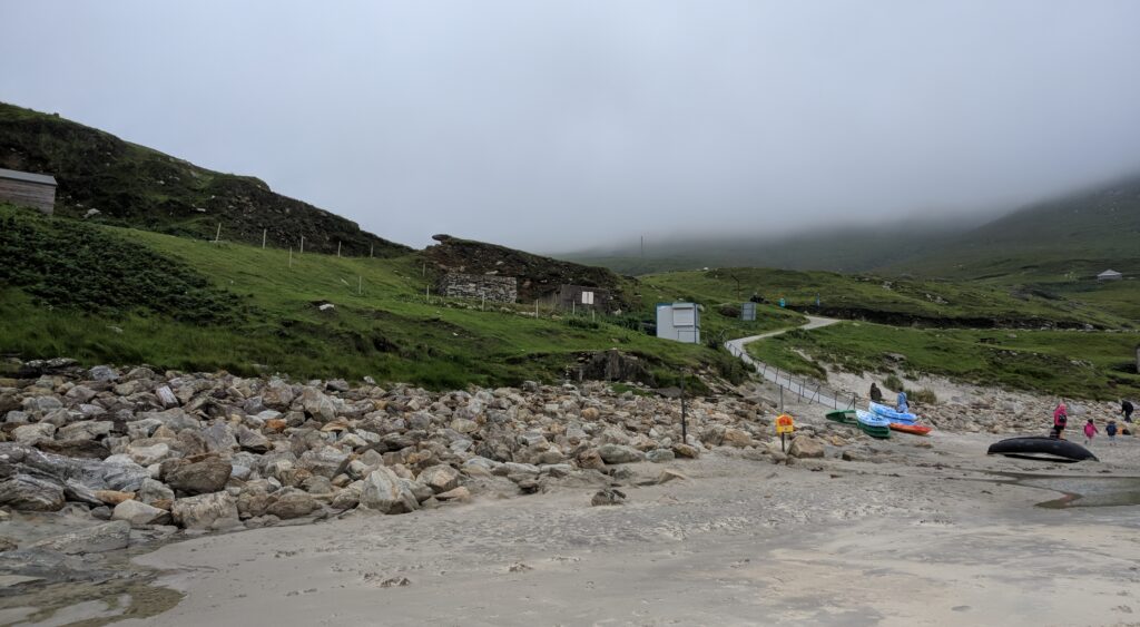 We headed to Keen beach, very close to Keel’s campsite. This was an old whale shark watching (and fishing) spot, which has now been left for recreational use. A nice visit, here it is supposed to be a path to the cliffs but were not able to see it with the fog and the wind (we also did not know exactly where to start walking). Anyway we spent some time in the beach playing some time before getting frozen.