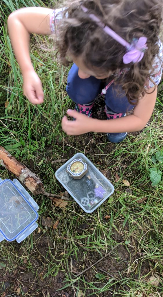 To make the walk funnier to the kids, we started to play Geocaching. This is a GPS mobile app that allows people to hide small treasures in the real world, and the app warns you when there is an object around, so you can look for it. It’s a fun game because the app tells you the coordinates but you need to find out where the treasure is hidden (you don’t even know how the treasure looks like). At the end of the walk there was one of these treasures and after some seeking, I was able to find the hidden treasure under a stone… The girls were so happy an excited!
