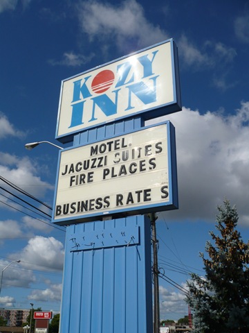 Ya estamos en Kingston y parece que estamos aquí todos, pues tras preguntar en cinco sitios todo está completo para dormir. Llegamos al Kozy Motel. Si si, el nombre lo dice todo. Nos dan la habitación (la última que queda). Poooozi, ¡¡vaya cutrada!! Dios mío, que antro, y qué mal huele. La colcha (eso sí, a juego con las cortinas) es terrorífica. El mobiliario… qué decir. A juego con el resto. Hecho polvo, todo lleno de quemaduras, machacaíto todo.