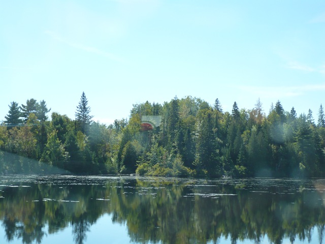 Nos levantamos en la cabaña de Pin y Pon, madre madre madre madre ¡¡¡Qué fresqui hace por aquí!!!! ¡La cabaña está heladita! Y como se intuía frío fuera, hemos perreado un poco en la cama. Tras levantarnos y tomarnos el café costaricense que compramos ayer, apuntamos el navegador hacia Quebec. ¡¡¡La madre que le parió al GPS!!! Con la belleza de estos paisajes, decidimos hacer ruta por carreteras secundarias y así disfrutar el paisaje, y aunque al principio así era, llegamos a un punto en el que el señor GPS insistía por meternos por una carretera inexistente, que digo carretera, camino de tierra… Así que tras varios intentos de reprogramarlo y ver que siempre nos mandaba por el mismo lugar, decidimos buscar autovía, bajando hacia Montreal de nuevo… Eso sí, hemos visto los paisajes más espectaculares de Canadá desde que estamos aquí: bosques inmensos y tupidos, y montones de lago.