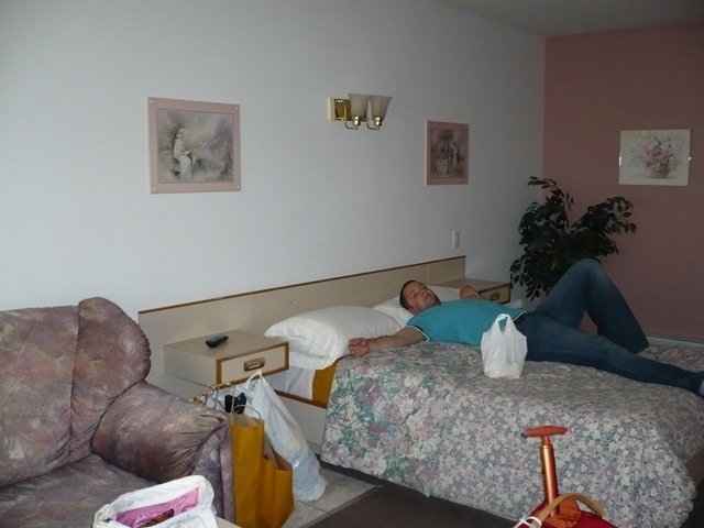 Tras largas «penumbras» llegamos, desandando el camino, a la civilización. Repostamos, en una mini gasolinera en el que la señora que atendía nos preguntó nuestro lugar de origen y puso cara de incredulidad cuando le dijimos que somos españoles… Supongo que hemos sido los primeros que ha visto en su vida, por la incredulidad que mostró… En fin, que llegamos a Montreal para coger autopista hacia Montreal. hacemos una paradita a comer rápido que son las 2 de la tarde y aún quedan unos 200 km… Así que nuestra ruta se completa sin muchos sobresaltos, eso si, algún camionero nos prueba los nervios, adelantándonos por el carril izquierdo a toda mecha (carril del que nos saca casi a empujones).