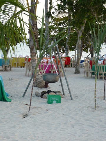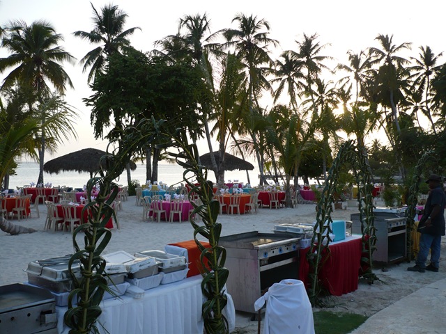 Tras la playa, observamos el bufé que están preparando aquí.