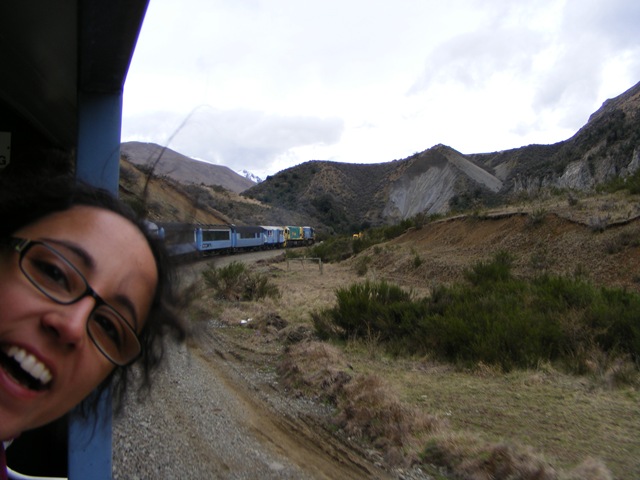 Y así hasta el Arthur’s Pass… Que es el puerto de montaña en el que se llega a 787 metros de altitud y el tren hace una parada antes de comenzar a bajar… Y el frío no nos deja hacer más de una foto de nuestro transporte hasta que nos metemos en el tren a entrar en calor.