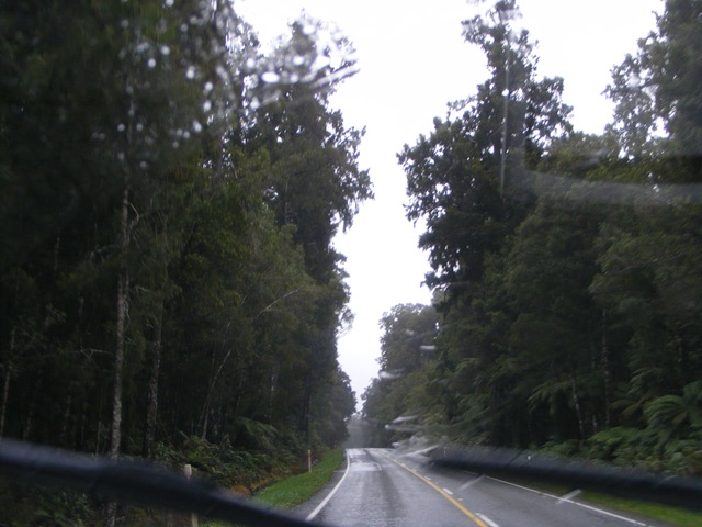 Llegamos sin incidentes a Franz Josef. Tras una vueltecita con el coche inspeccionando moteles, encontramos uno que tiene una pinta bastante apetecible. Preguntamos y el encargado, un tio muy agradable, nos enseña una habitación por 50 euros la noche muy chula… Asi que aquí nos quedamos a pasar dos noches… Y a rezar para que pase el temporal para mañana.