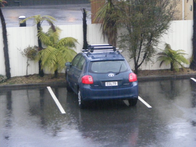 Al principio se hace complicado cambiar con la izquierda, pero a los pocos kilómetros ya me hice con los mandos. Por cierto, el Toyota Corolla este va que se las pela, no se que motor tiene pero es potente (es un Auris de los de España). Y guay porque así los 170 kilómetros se nos hacen fáciles. Y eso que no hemos podido correr porque ha caído un aguacero… Pero bueno, alguna foto ha hecho María por la ventanilla.