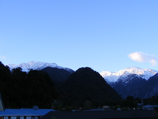 Así que hacemos la maleta, desayunamos, metemos todo en el coche y vamos al centro del pueblo de Franz Josef (es decir, a la calle de al lado). Allí nos dan no una, dos buenas noticias. La primera: que hay más gente dispuesta a volar a las 8 de la mañana con lo que si podremos volar. La segunda: las otras personas hacen el tour más largo con lo que nos ofrecen el mismo tour al precio del intermedio (ahorrandonos 200 dólares)… Así que por supuesto accedemos, conocemos a Margareth e Ian, la pareja de señores australianos que han hecho posible juntarnos cuatro personas para el vuelo, y a las 8 en punto está el helicóptero recogíendonos.