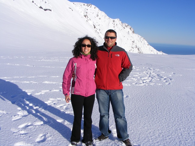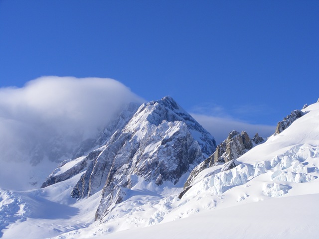 De ahí nos lleva a ver el monte Cook, al lado del glaciar Fox. Ahi si que puede aterrizar y nos hacemos mil fotos.