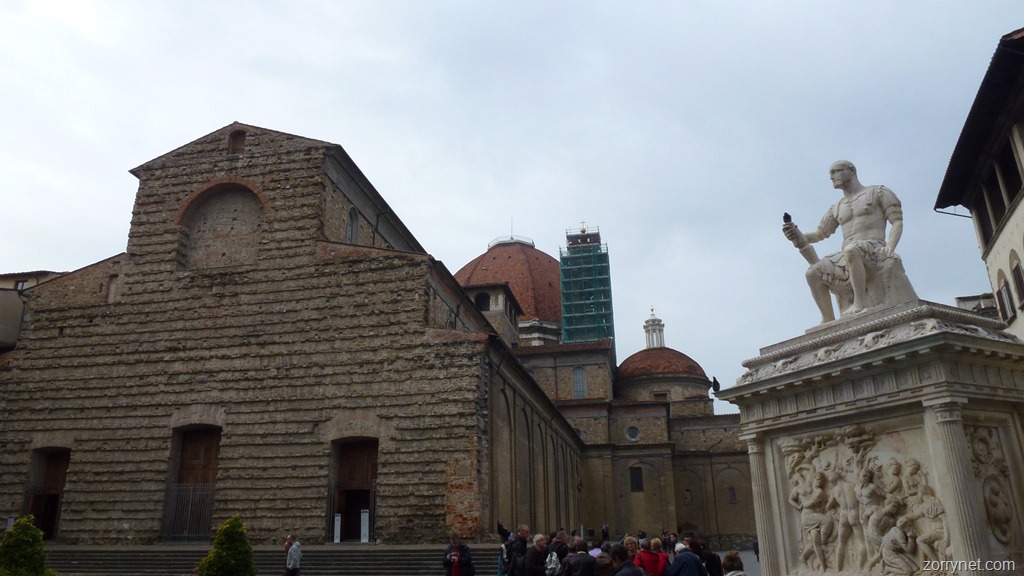 Después de comer tomamos la Vía de Neri para llegar a la Piazza de San Lorenzo y la basílica del mismo nombre, donde nos sentamos un rato en un banco a descansar y mirar la catedral.