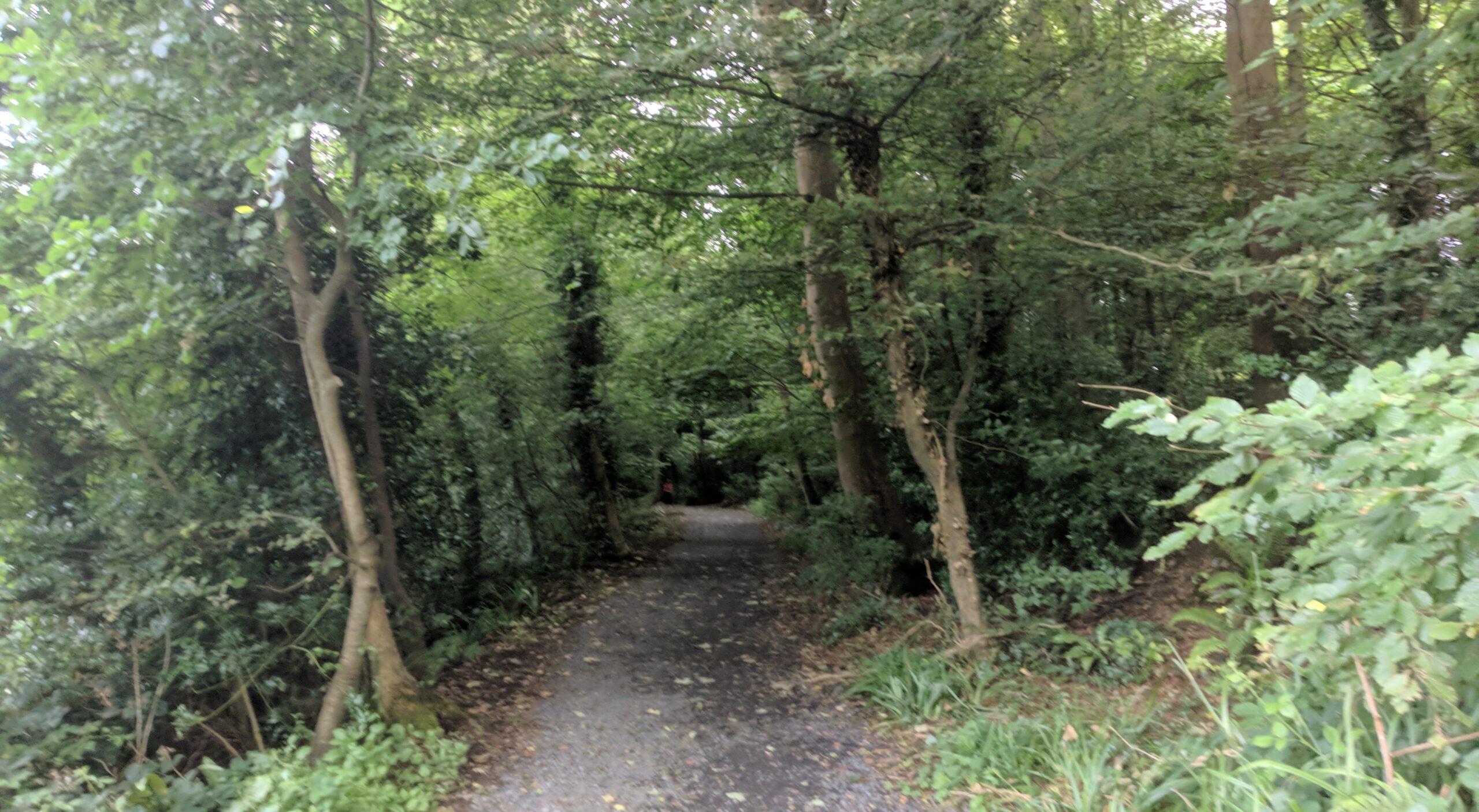 Ya después de esto toca empezar a volver hacia Dublín que está lejillos y pasado mañana se acaba esto… Así que volvemos a pasar por Newport, el pueblito pequeño pero pintoresco en el que no pudimos parar ayer. Aquí, después de tomar un café muy Expresso, vemos que hay otro geocache en un parque muy cercano que se llama Princess Grace park, así que vamos a la búsqueda. Entramos en el parque que es un bosque muy cerrado y bonito, y cuando llegamos al lugar del GPS, nos ponemos a buscar. Esta vez es María la que encuentra el cofre, escondido bajo un hueco del árbol, pero ninguna se atreve a cogerlo, así que meto yo la mano. Esta vez el cofre tenía un montón de cositas pero no se debe coger nada del tesoro sin dejar nada a cambio, así que como no llevamos nada para intercambiar lo dejamos tal cual, después de firmar en el cuadernito de visitas. Por cierto aquí el tiempo ya mucho mejor, va apareciendo el sol y el aire ya se ha calmado.