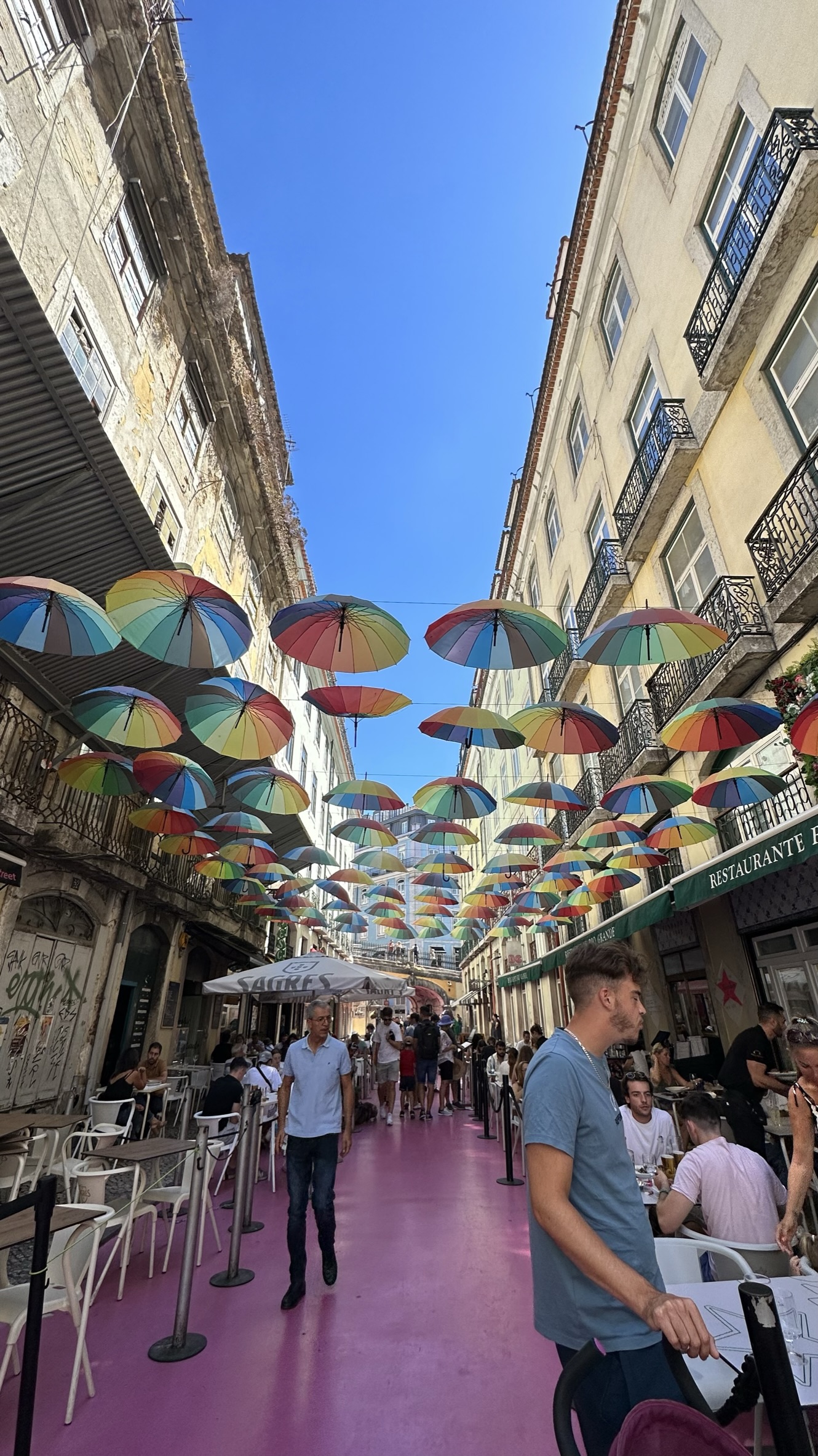 Cómo está tan lejos toca buscar medio de trasporte. Se me ocurre que puede ser buena idea tomar un tuktuk de vuelta y ¡fue muy divertido! La conductora, una guapa portuense que nos estuvo amenizando el camino de vuelta contándonos cosas de los diferentes edificios que íbamos pasando, y de paso conquistando mi corazón jajaja Nuestra bella conductora nos deja en la Rua de Carvalho o pink street Que llamo ella… muy bonita la verdad.