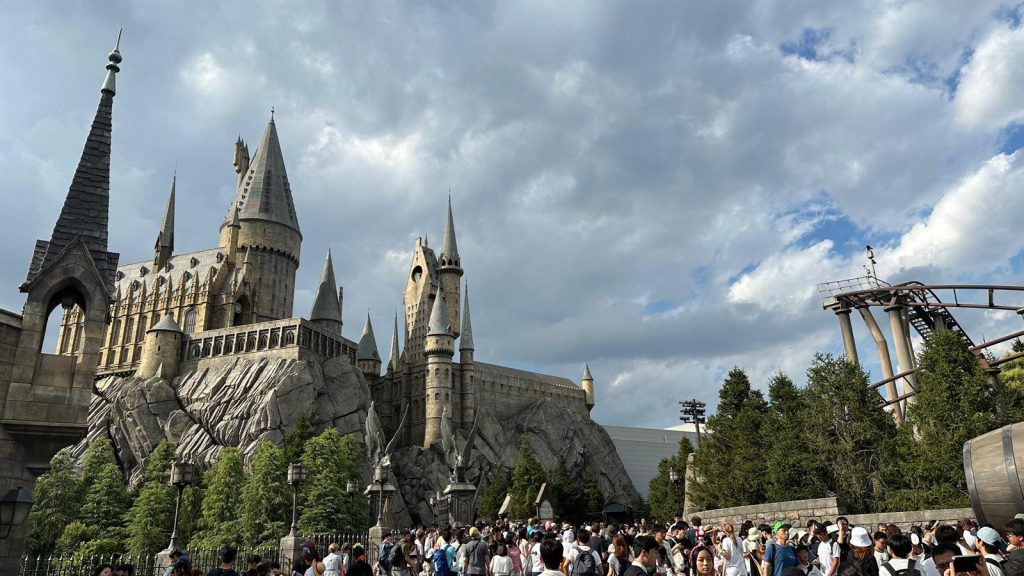 Son las 6 de la mañana y nos levantamos de un brinco para prepararnos e ir al parque Universal. A pesar de que abren a las 8 oficialmente, dicen que una hora antes ya admiten gente. Así que teniendo en cuenta de que es una hora de camino entre metro y tren, salimos sobre 6:30, recogemos el desayuno en el 7 eleven y al metro. Llegamos a las 7:20 aprox a la estación de Universal Studios, y es impresionante la cantidad de gente que marcha hacia allí, las calles alrededor están ya decoradas como si fueran el parque y a la entrada hay ya como unas 20 colas de gente, impresionante, y efectivamente ya está la gente accediendo al parque. Mientras avanzamos nos desayunamos, pasamos el control de seguridad bastante rápido, pasamos el QR de la entrada y para dentro!