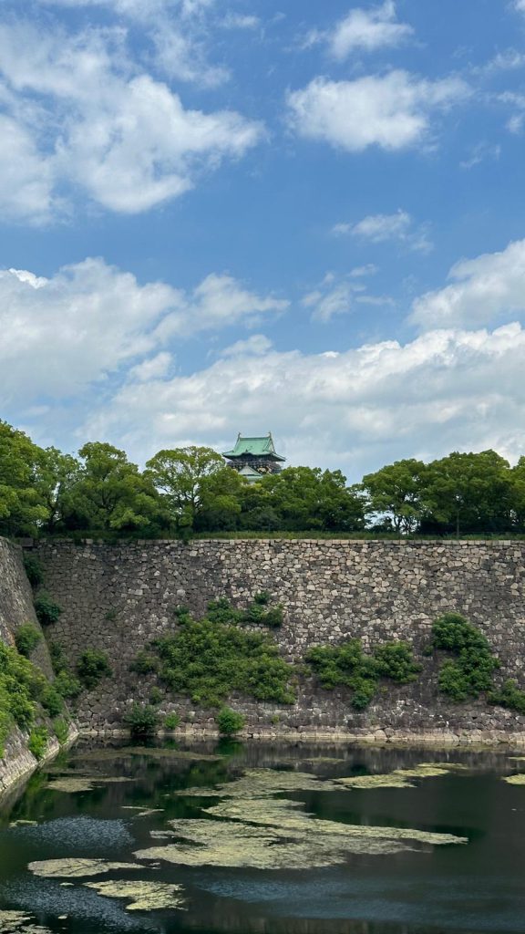 Así que nada, una hora perdida y el dinero claro, al final cogemos un pase de un día de metro en la máquina. Nos vamos hacia el castillo de Osaka, es impresionante mente alto, pagamos una entrada (los menores de 15 no pagan) y subimos arriba a contemplar las vistas, no sin antes tener que parar a tomar un café para recuperar el aliento porque el paseo desde el metro a aquí ha sido como una travesía en el desierto. Chico, que calor hace!