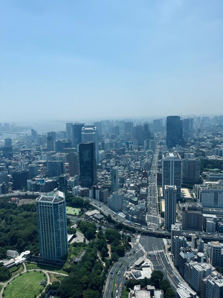 After having breakfast at 7-Eleven, we head to Tokyo Tower. The visit is highly recommended—the views from the top are worth it! You buy the ticket at the entrance, and they give you a time to go up (we only had to wait about 10 minutes). First, you take an elevator to the main deck, where they take a picture of you that you can later buy in a large format, but if you don’t want to pay, they give you a small postcard-sized version. Then, you take a second elevator that takes you all the way to the top. You can stay up there as long as you like, so we spent some time admiring Tokyo from above.