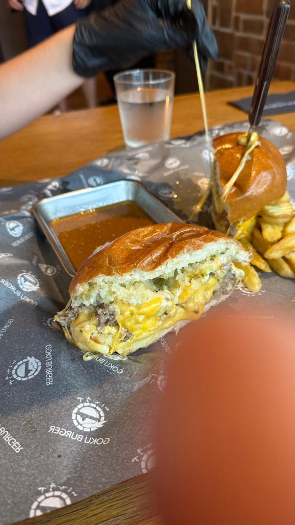Today, the heat is hitting hard again, so on our way back, we decide to stop in the Omote-sando neighborhood and take a stroll through this elegant area. Around one in the afternoon, we stop at a burger place called Goku Burger 😂 We really enjoyed the meal, especially the kids, who were amazed that they even give you gloves so you don’t get messy eating such a monstrous burger 😂