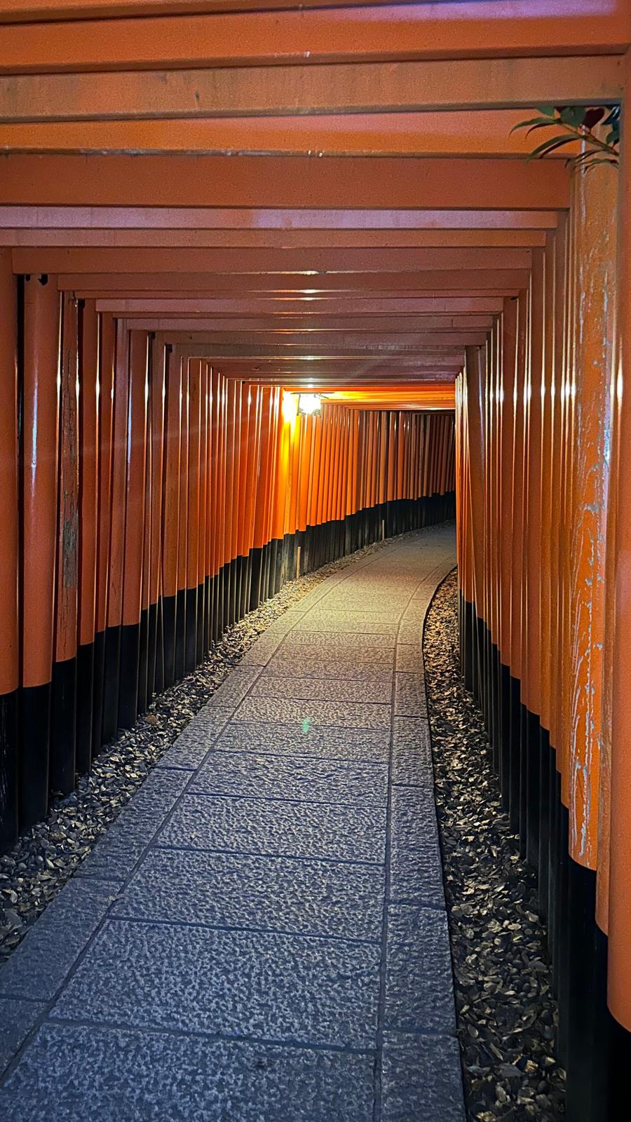 This time, we took a train to Fushimi Inari Taisha, the famous shrine with thousands of torii gates that lead up Mount Inari. It’s a spectacular place, and although we didn’t get to see it in full daylight, the heat was so intense that I can’t even imagine what it would’ve been like earlier in the day—probably unbearable. The upside was that, since it was already nighttime, there were hardly any people around, and we got to enjoy the walk in near solitude.