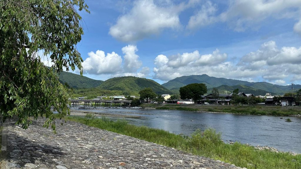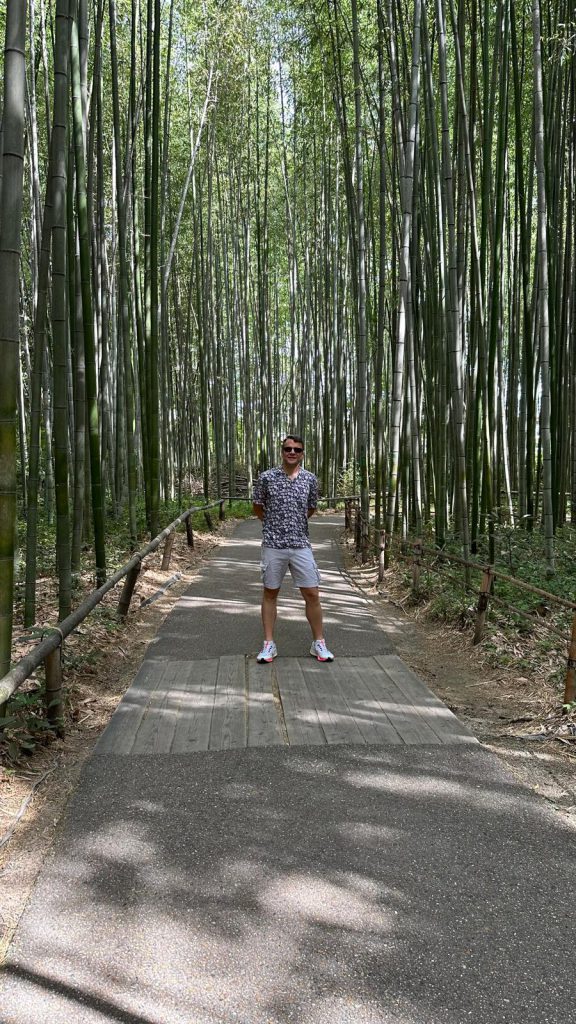 Our last day in Kyoto begins! We wake up early, and by around 8 AM, we’re already on the move. Before hopping on the train, we grab a quick breakfast from the kombini next to the hotel (this time, it’s a Lawson) to eat on the way to Arashiyama. After two transfers, getting off at the wrong station (which meant waiting for the next train), and almost an hour of travel, we finally arrive at this beautiful district on the outskirts of Kyoto. Here, we see lots of people out and about—cycling, running, strolling… and after a 15-minute walk, we finally reach the bamboo forest.
