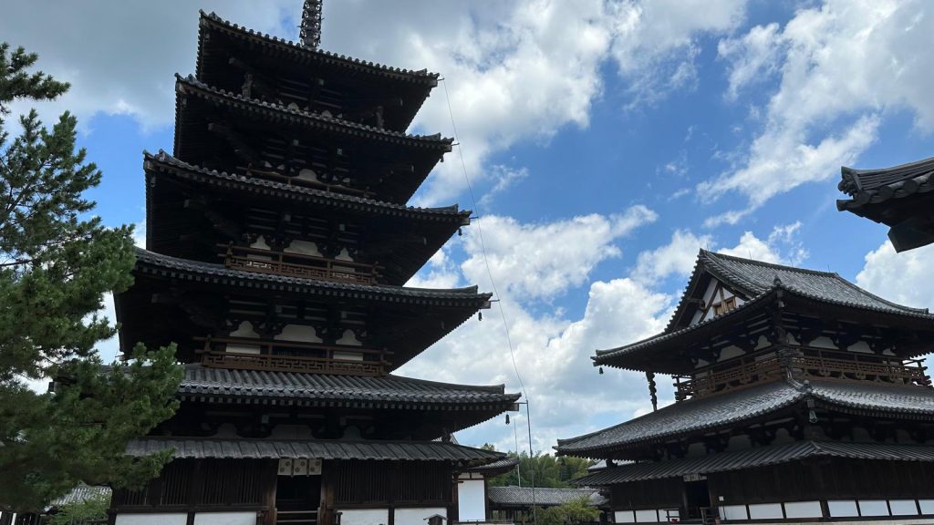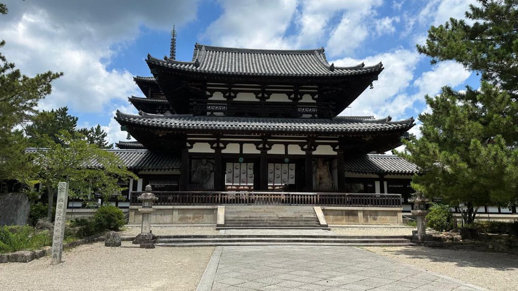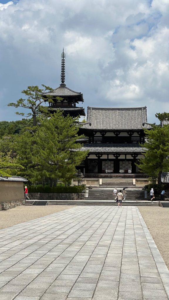 After what felt like an eternity (and half-melting under the sun), we finally arrived at the temple—the oldest wooden structure in Japan. Pretty impressive! We even got to go inside, but of course, we had to take off our shoes first.