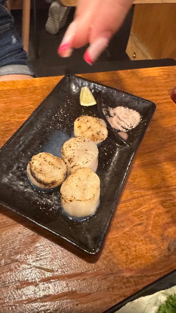After that, we left the area and looked for a nice sushi spot for our farewell dinner. We had some incredible sushi—tuna, salmon, and a delicious mixed platter. Olivia went for grilled wagyu beef, which must’ve been amazing because she didn’t let me try it! 😂